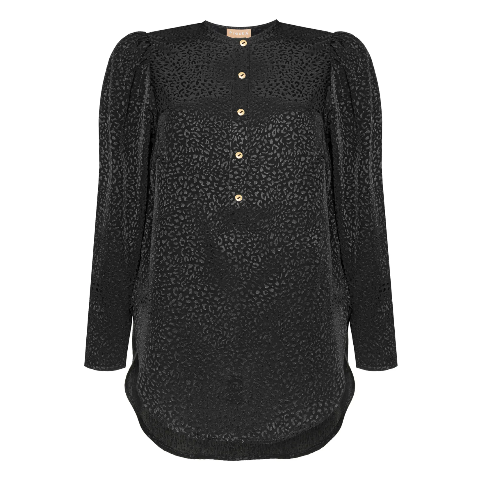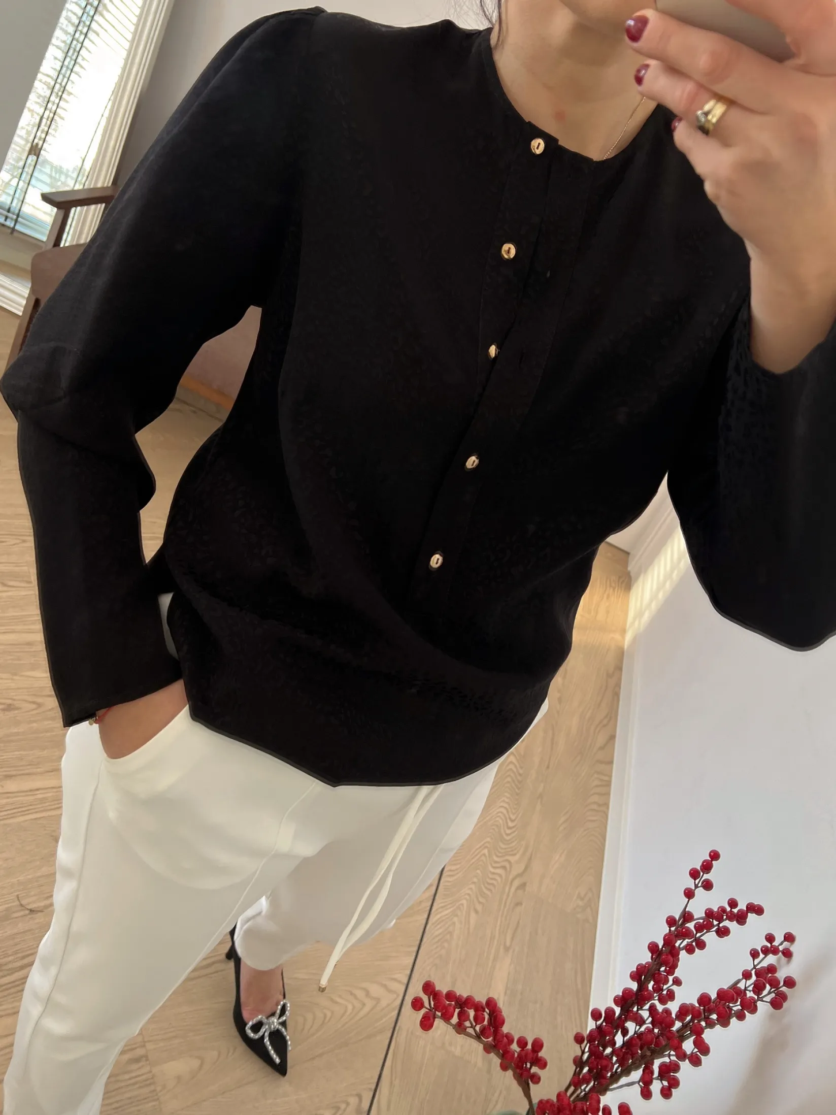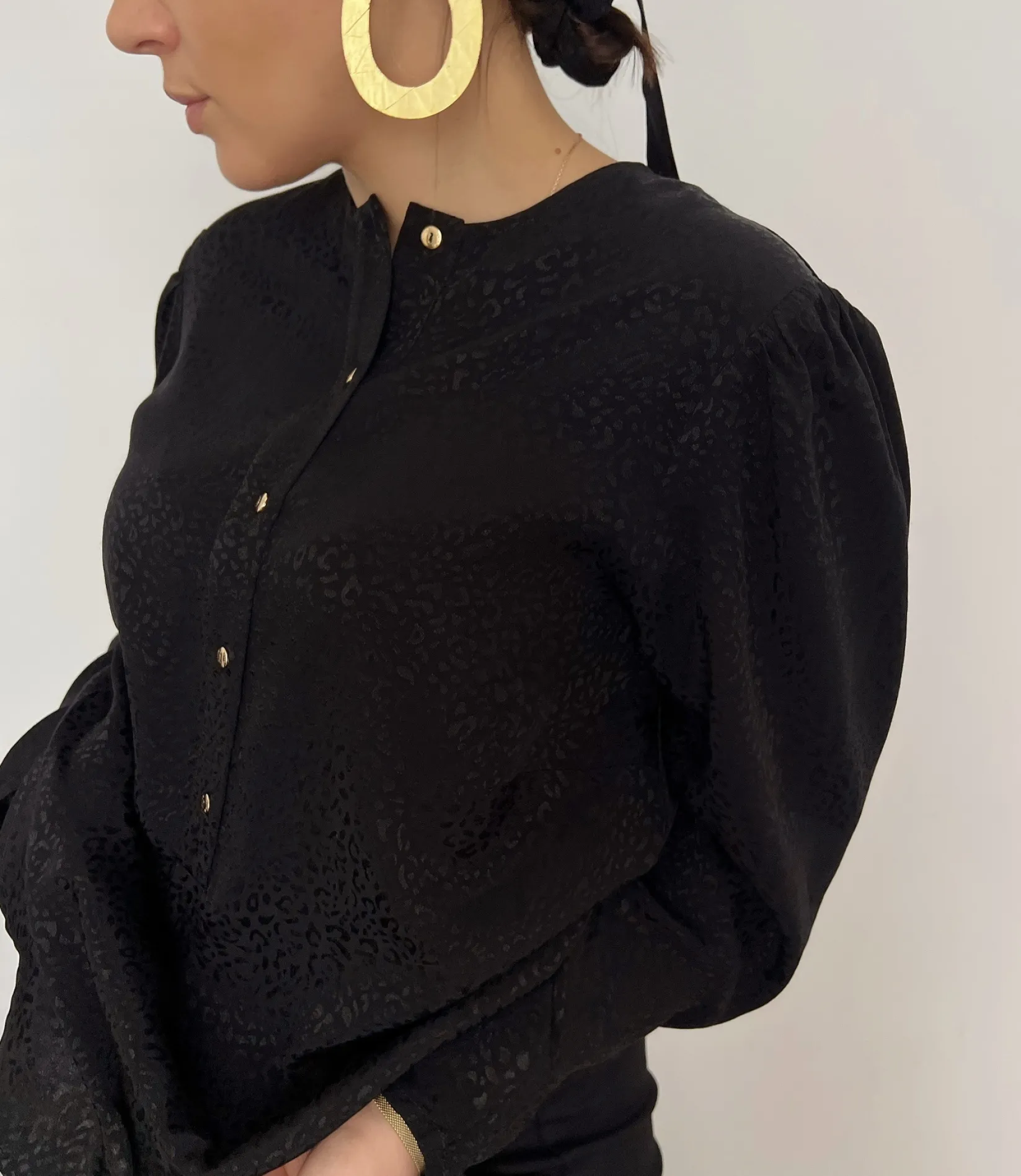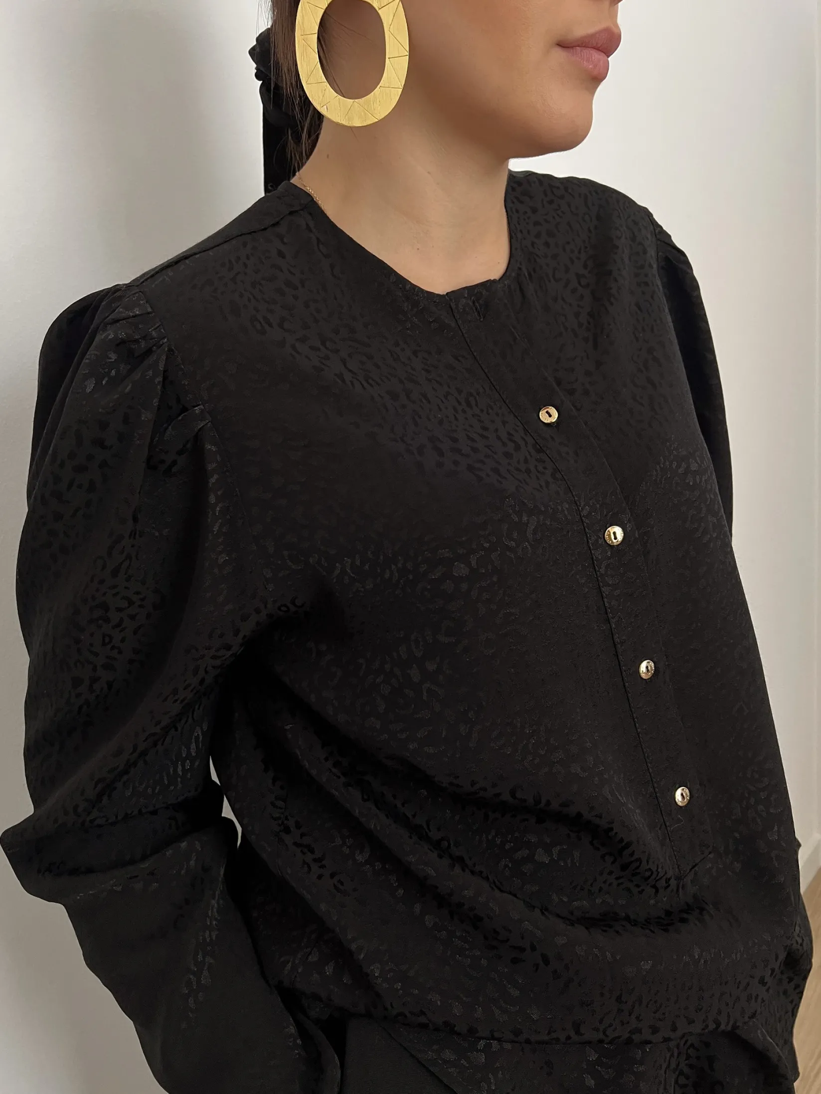 Bluzka Gala to nasza najnowsza propozycja wiosenno-letnia. Bluzka prosta z lekkim dopasowaniem w pasie oraz z zaokrąglonym tyłem. Z przodu plisa ze złotymi, logowanymi guziczkami. Dekolt okrągły. Rękaw bufiasty zwężany w stronę nadgarstka.