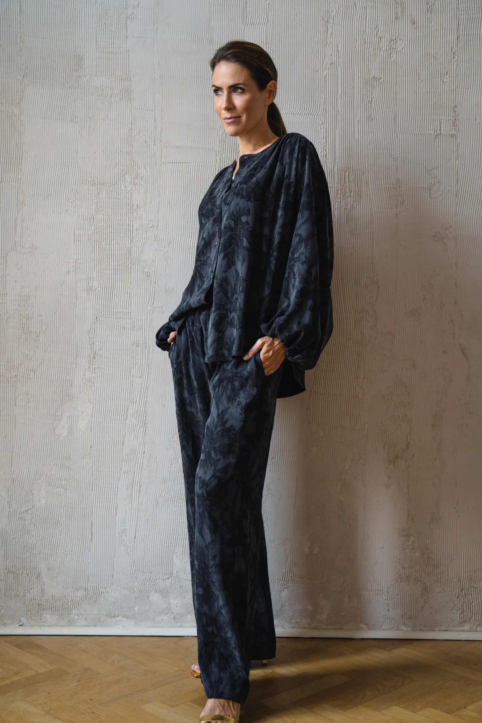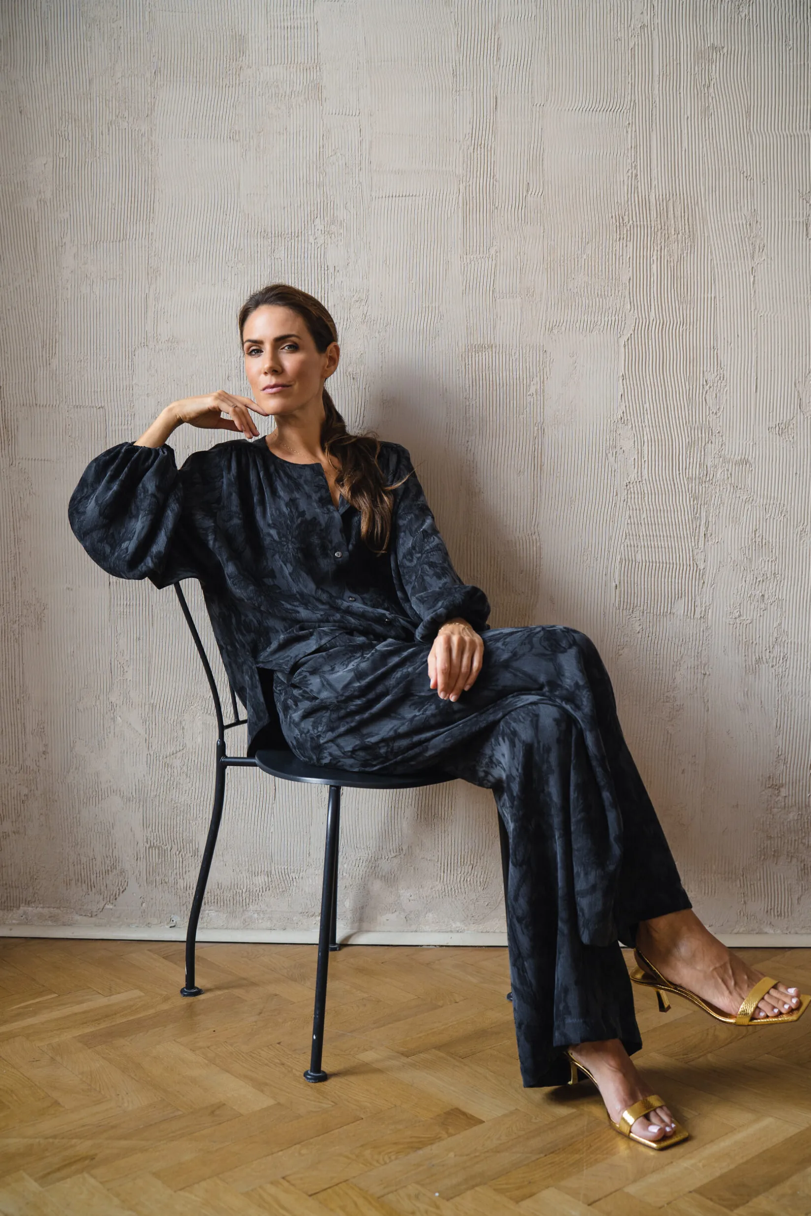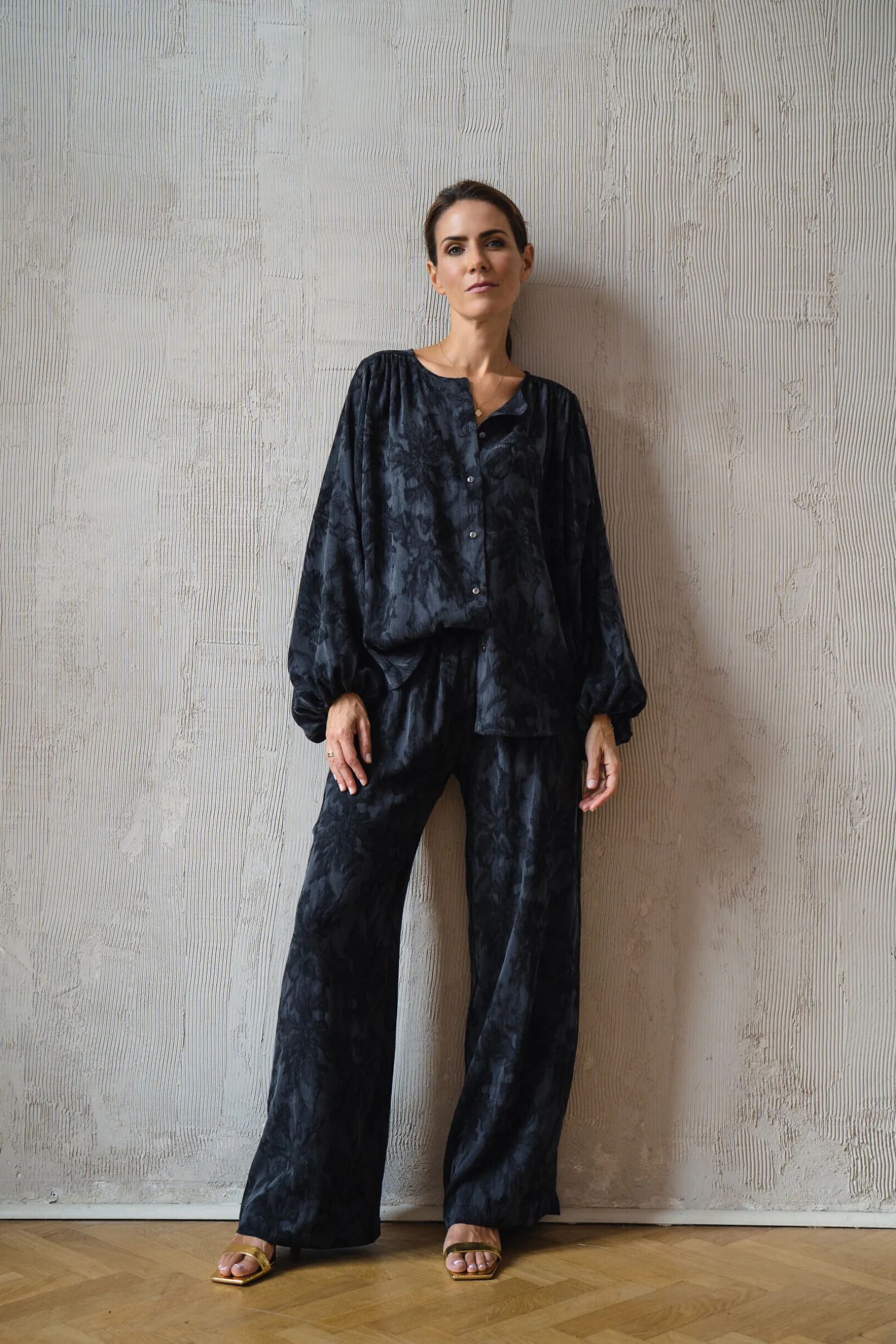 W pasie 5 cm guma. Nogawki długie i szerokie. Doskonały wybór na co dzień – świetnie wyglądają zarówno w casualowej odsłonie, jak również eleganckiej. Uzupełnieniem stylizacji w tym modelu będą sneakersy lub szpilki, które dodadzą parę centymetrów i podkreślą elegancki charakter stylizacji. Idealne połączenie tworzy z koszula GIRONA CHARLOTT.