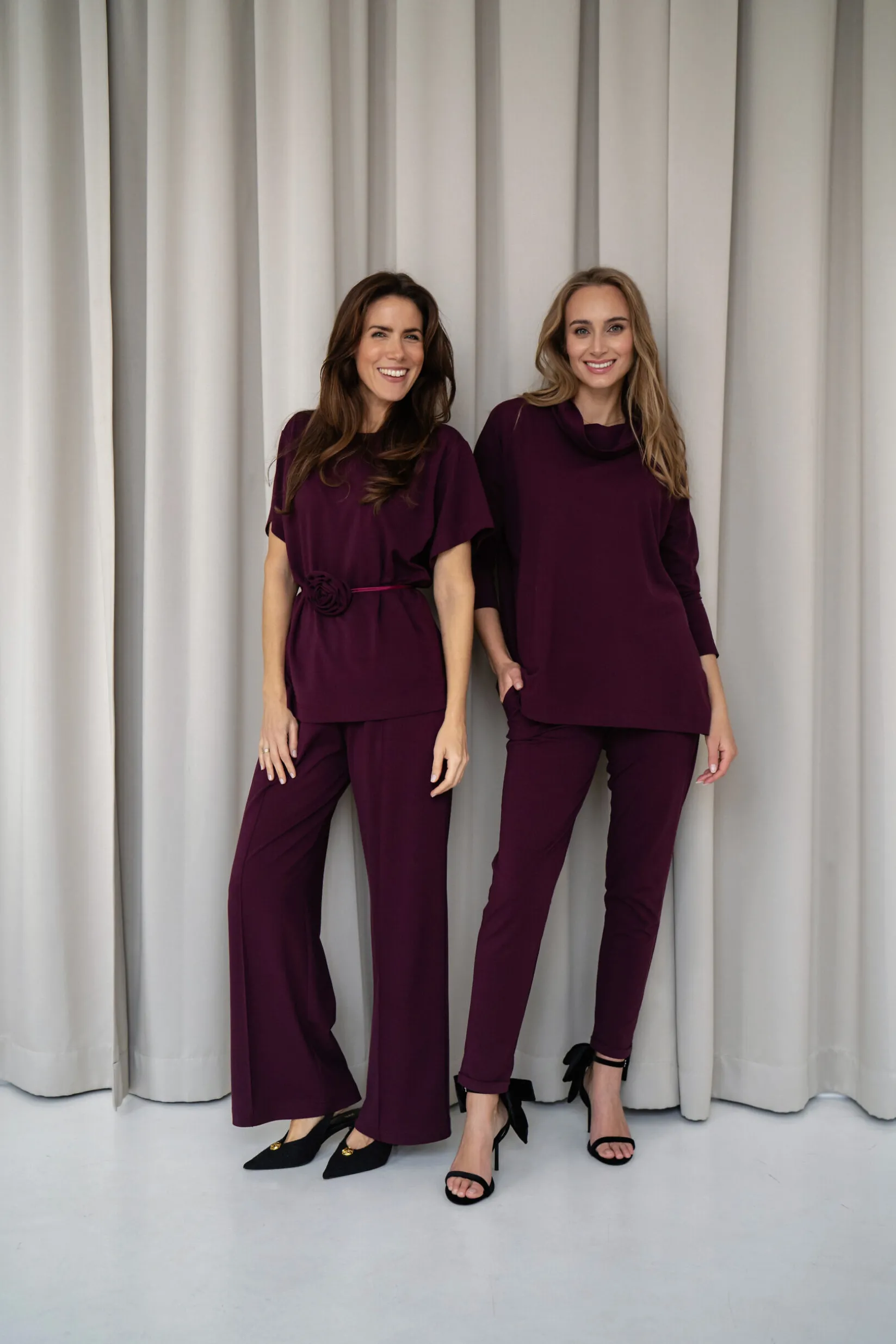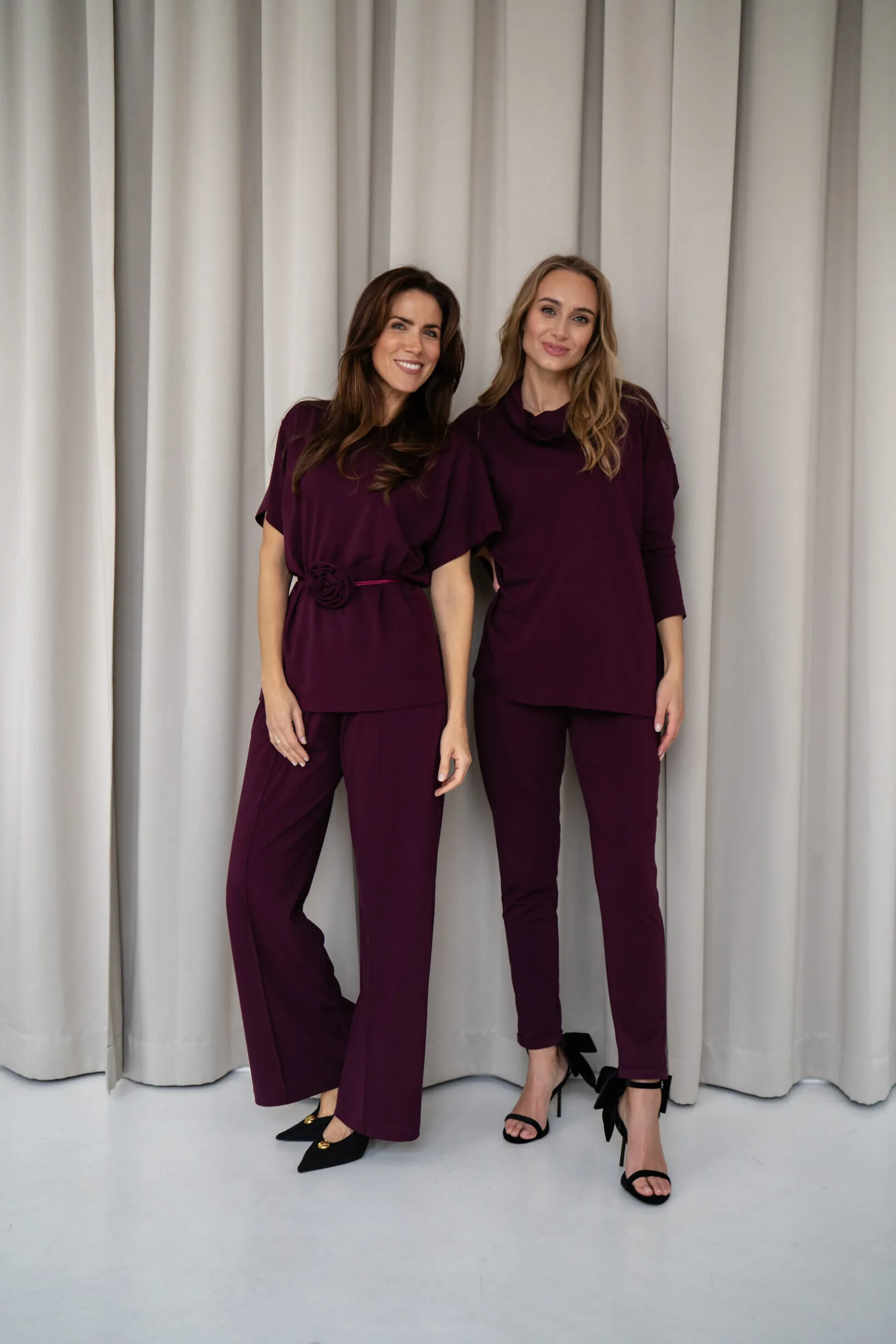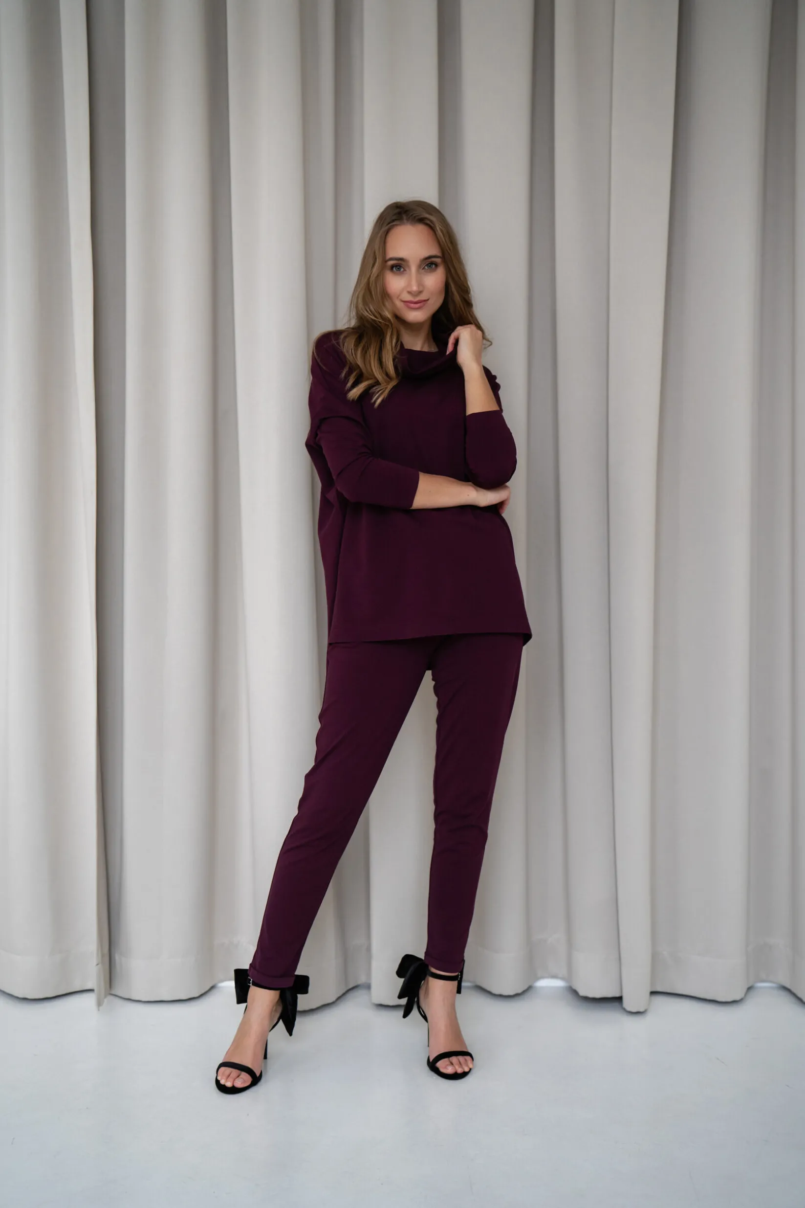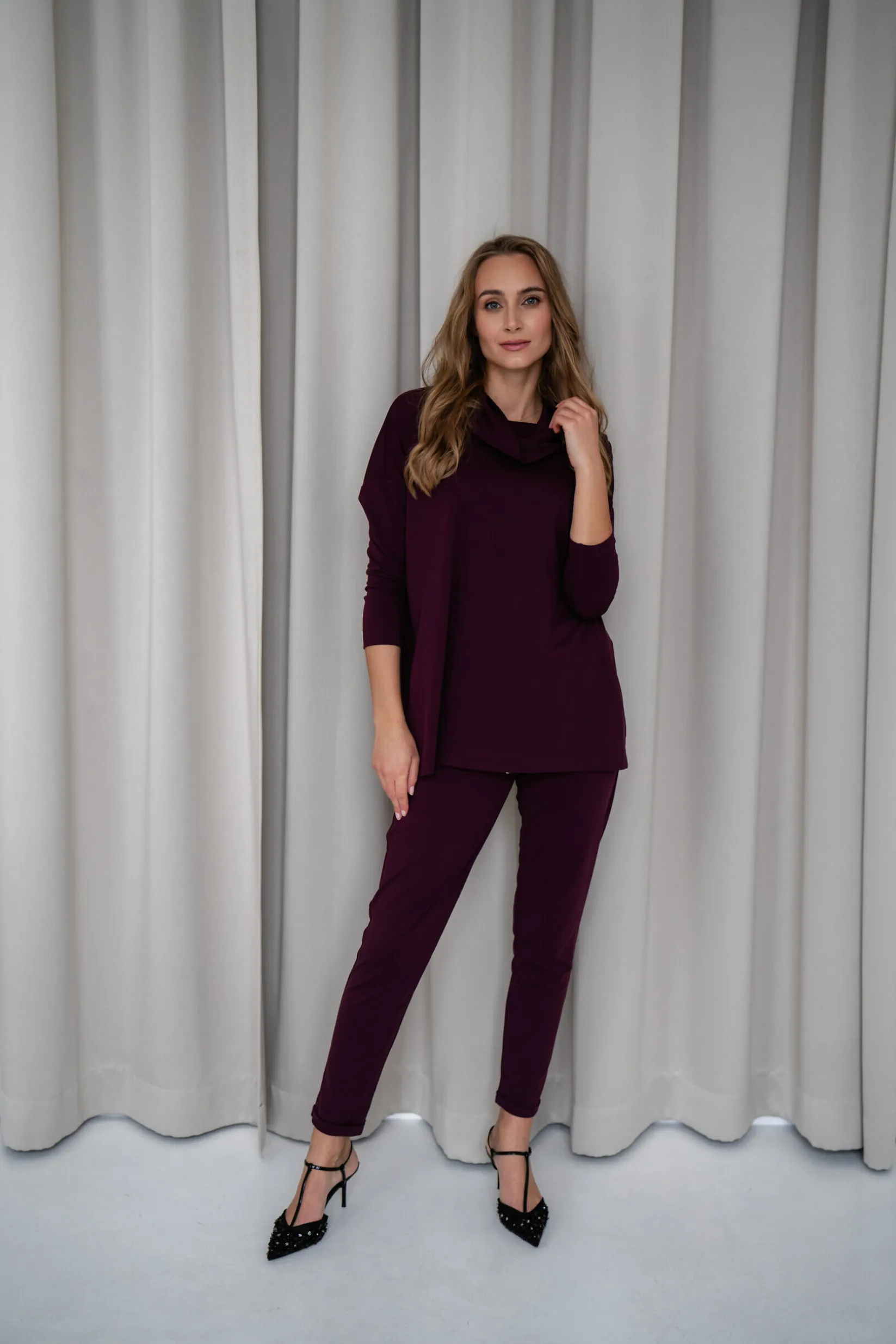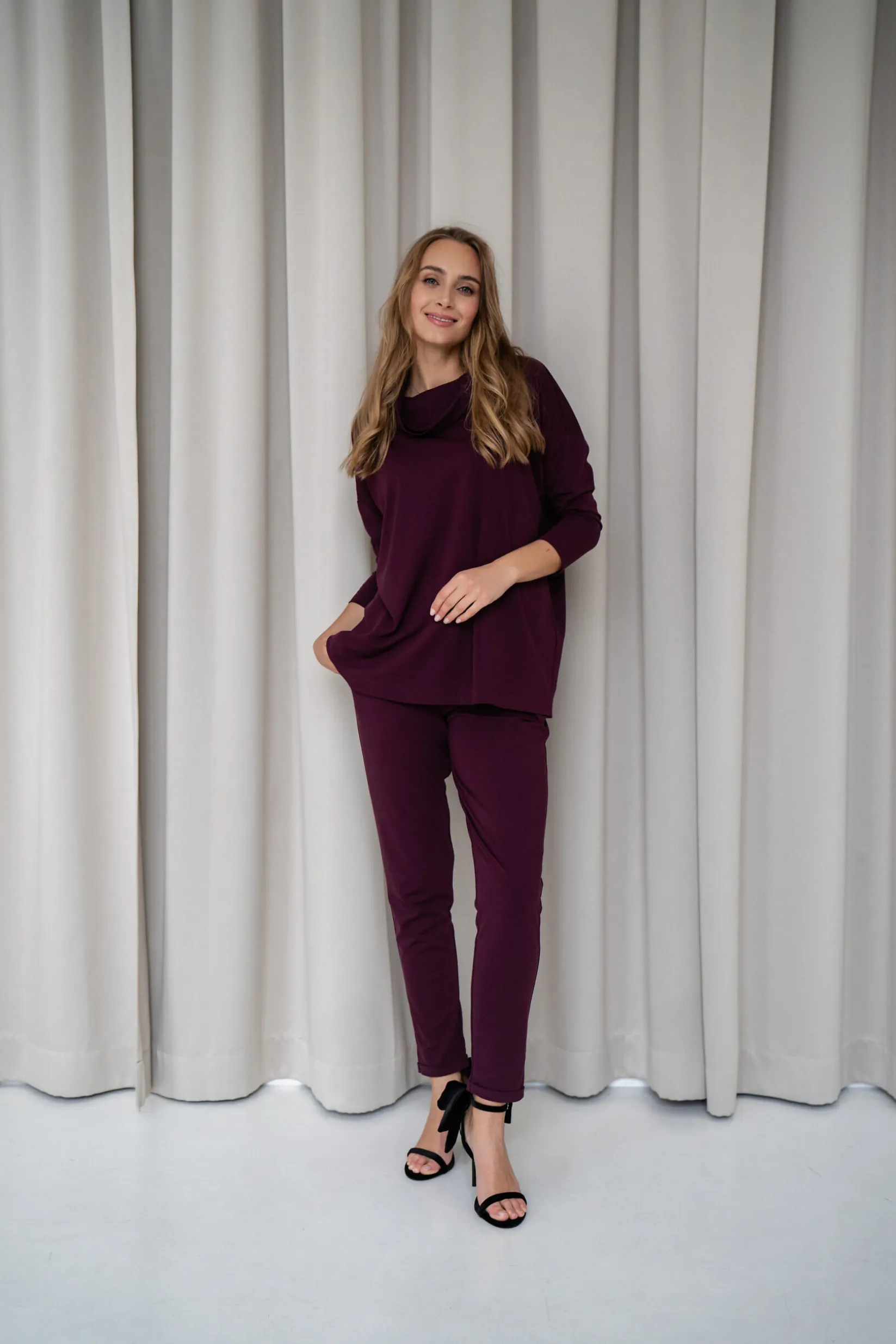 Spodnie wykonane z wysokiej jakości tkaniny dzianinowej. Bardzo miła i przyjemna w dotyku. W pasie gumką z dodatkowymi trokami. W bocznym szwie kieszenie. Dół spodni wykończony małym mankietem.