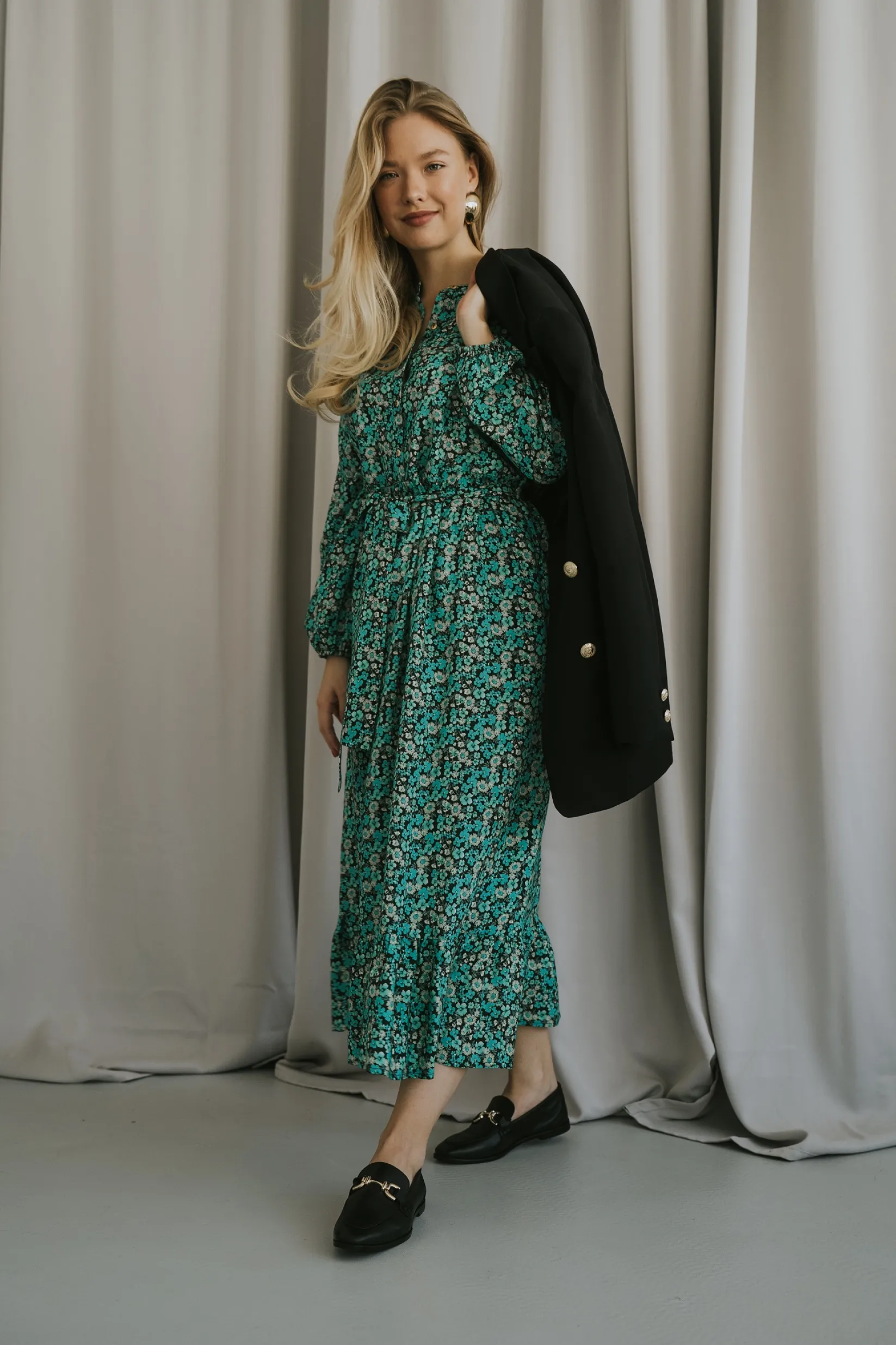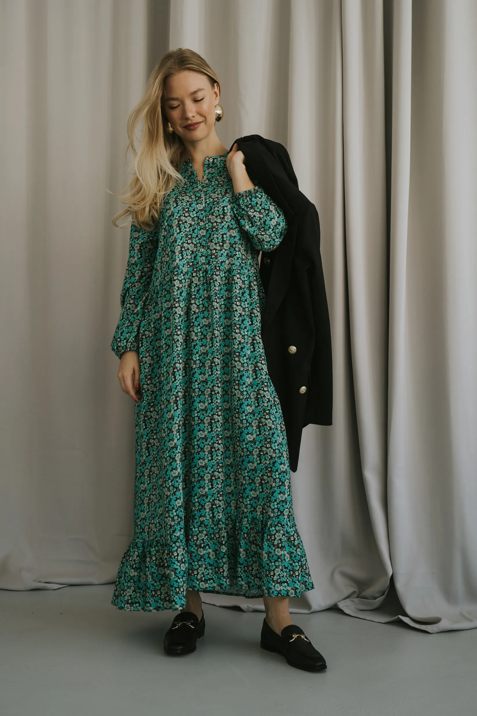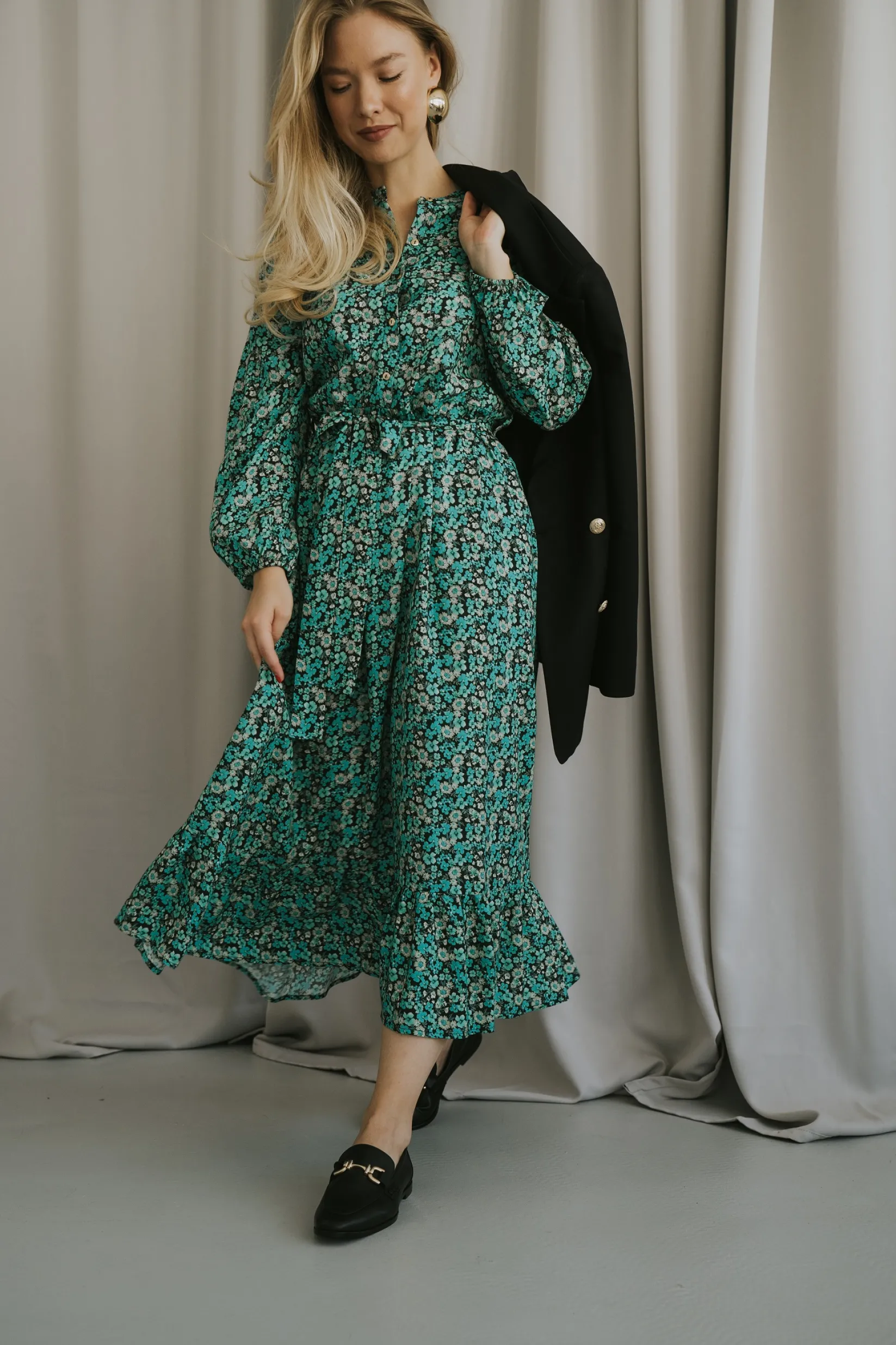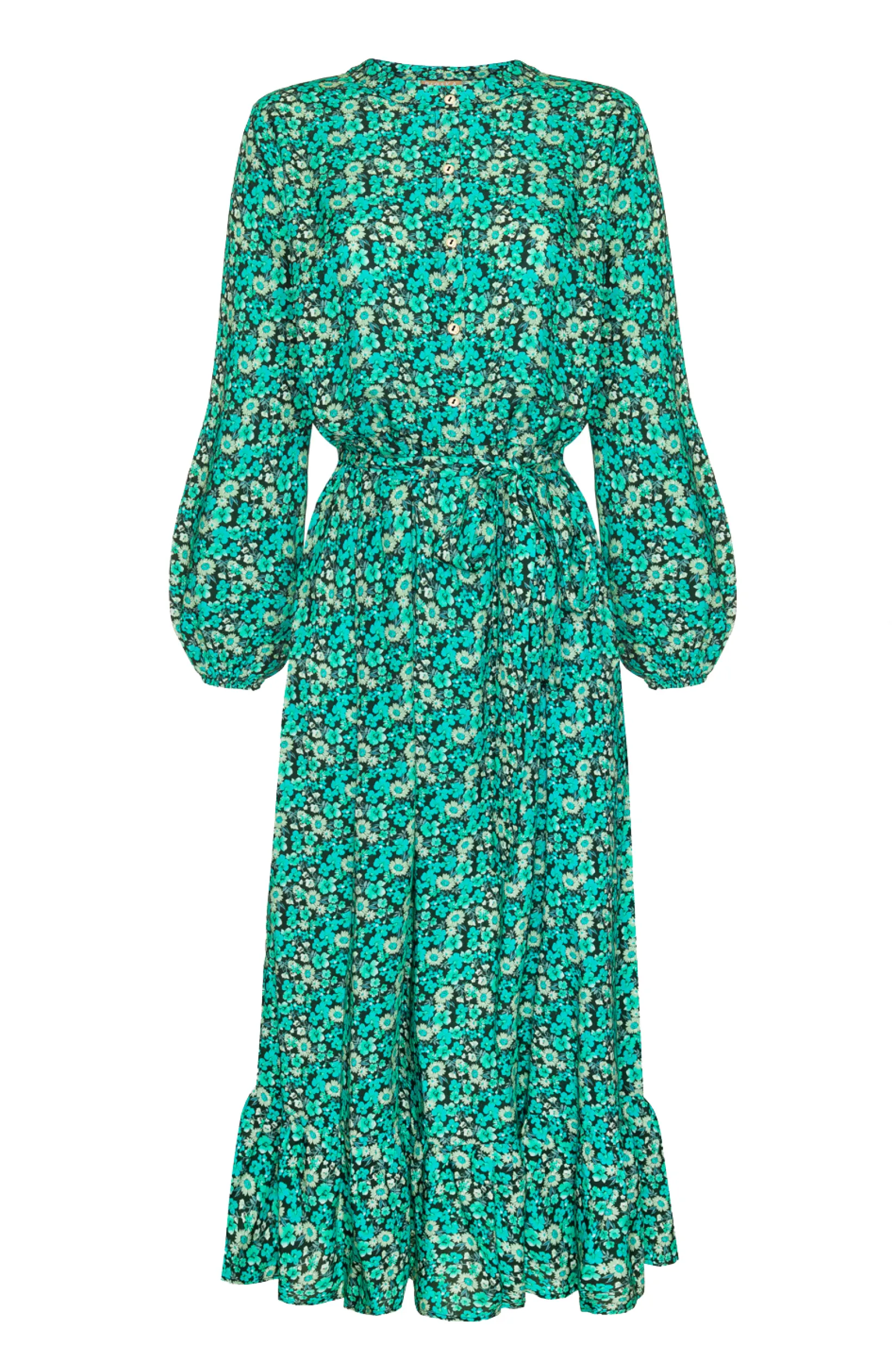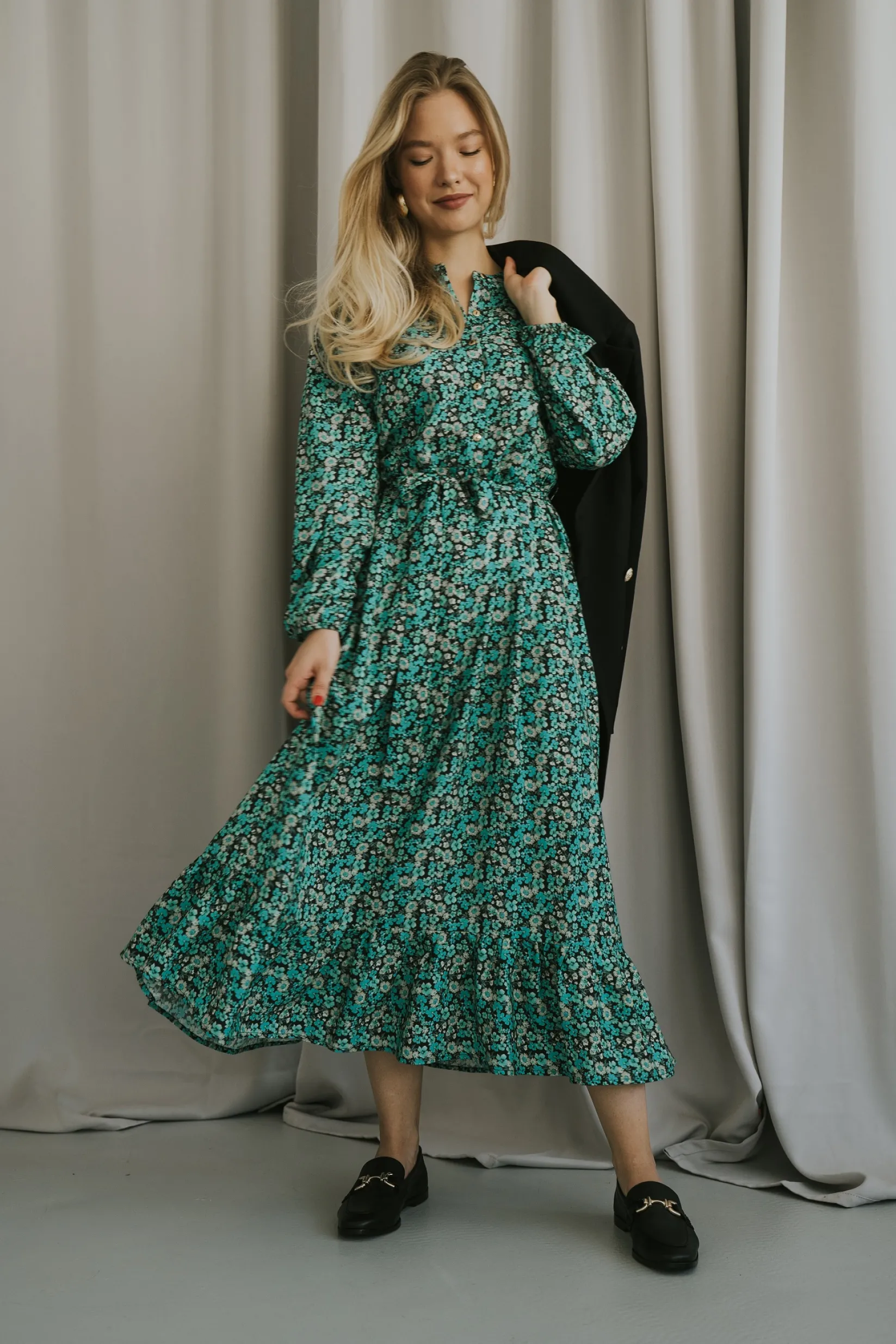 SUKIENKA PATRIKA to długa sukienka max, uszyta z 3 metrów tkaniny. Sukienkę tworzona z falban. W bocznym szwie kieszenie. Góra zapinana na złote guziczki. Sukienka posiada dodatkowy pasek do ew. Podkreślenia talii. Soczysty kolor sukienki będzie podkreślał kobieca urodę.