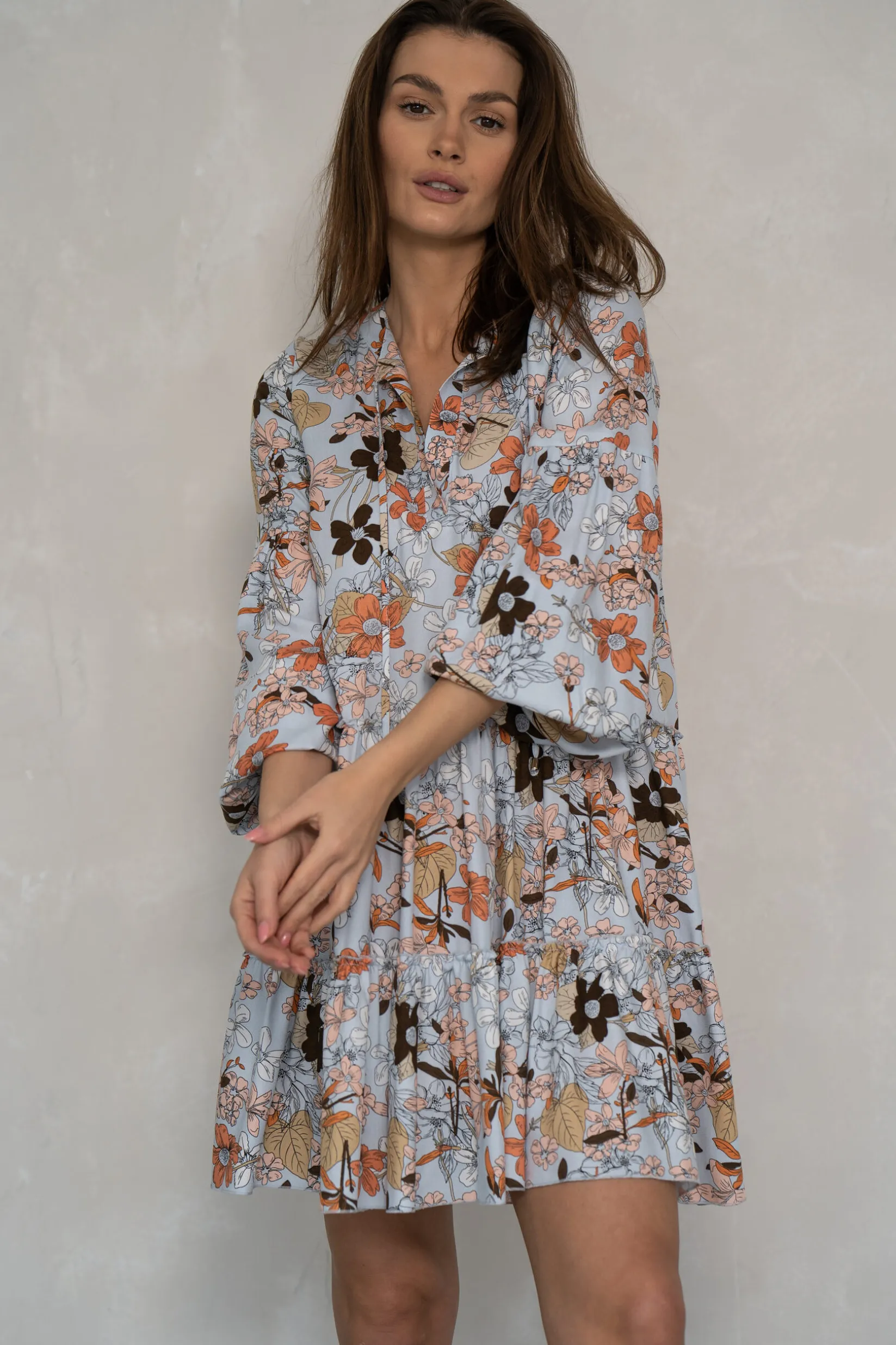 Sukienka RIFI to najnowszy model. Sukienka krótka lekko przed kolano, z długim bufiasty rękawem zakończonym gumką
