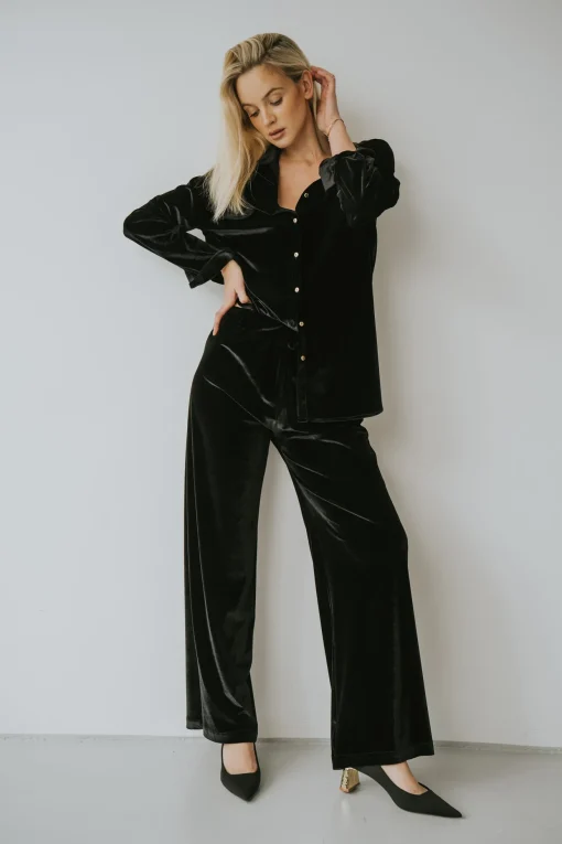 Spodnie CLARET VELVET BLACK to elegancka wersja spodni welurowych