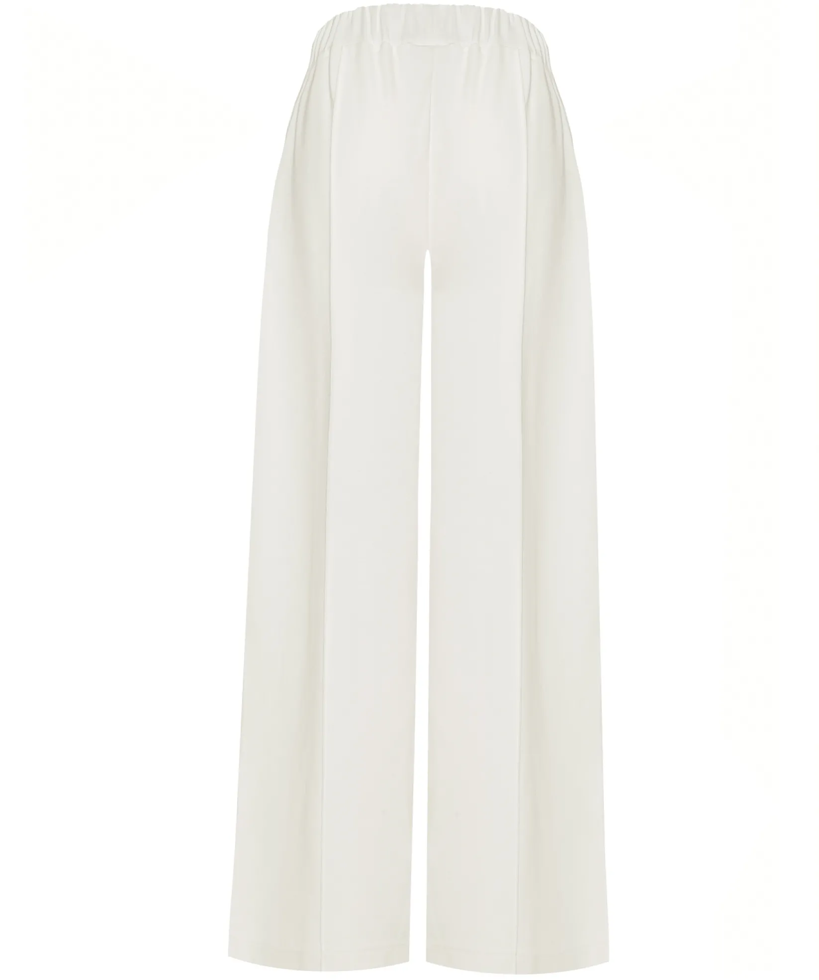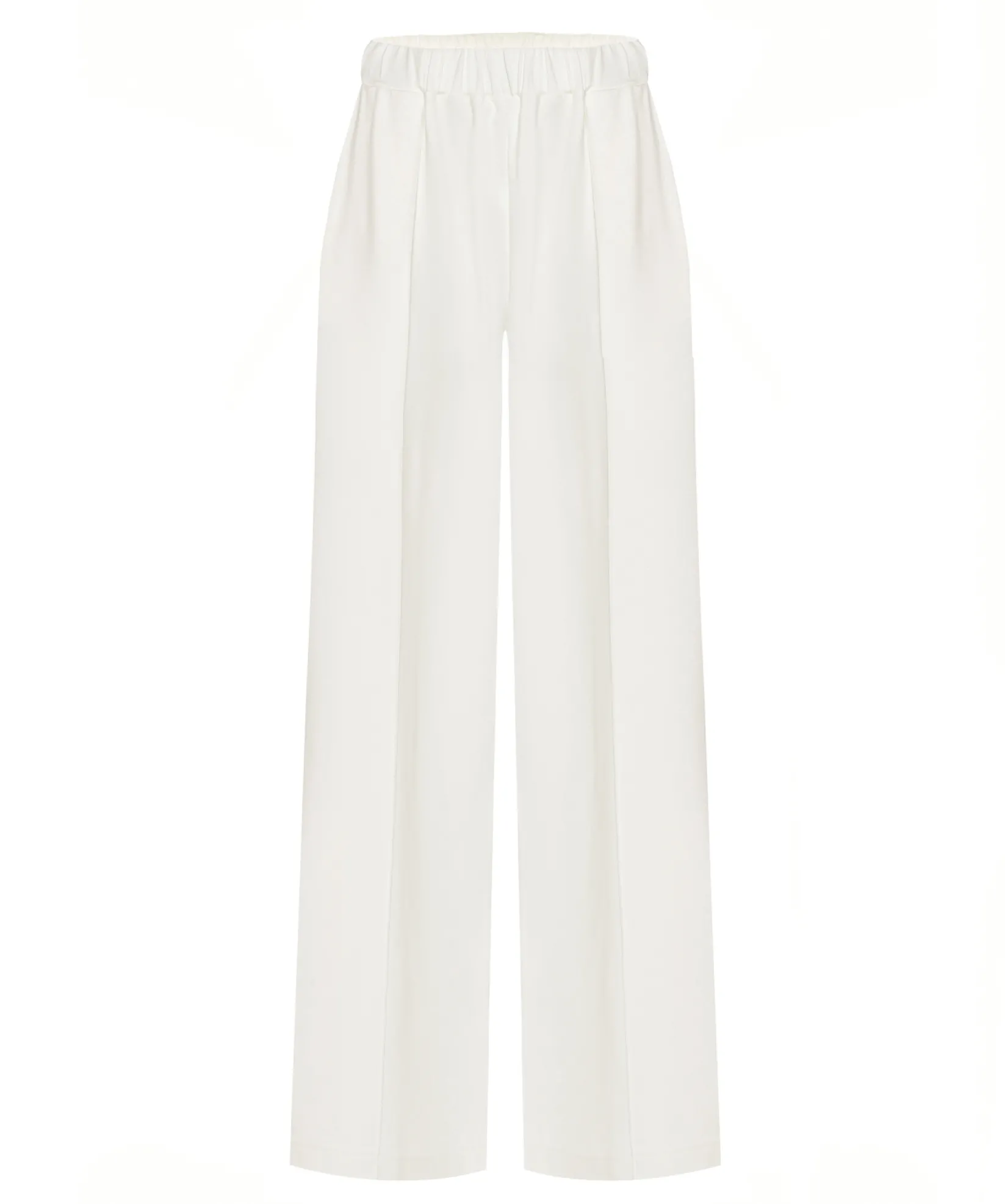Spodnie CORN to nasza najnowsza propozycja super wygodnych spodni. Długie spodnie w kolorze kremowym, uszyte z przyjemnej, mięsistej, lejącej tkaniny dzianinowej. W pasie posiadają szeroką gumę, która pozwala regulować długość. Model spodni prosty z dodatkowym przeszyciem wzdłuż nogawki z przodu i z tyłu – dzięki temu optycznie wydłużą nogi. Spodnie wzbogacone o kieszenie.