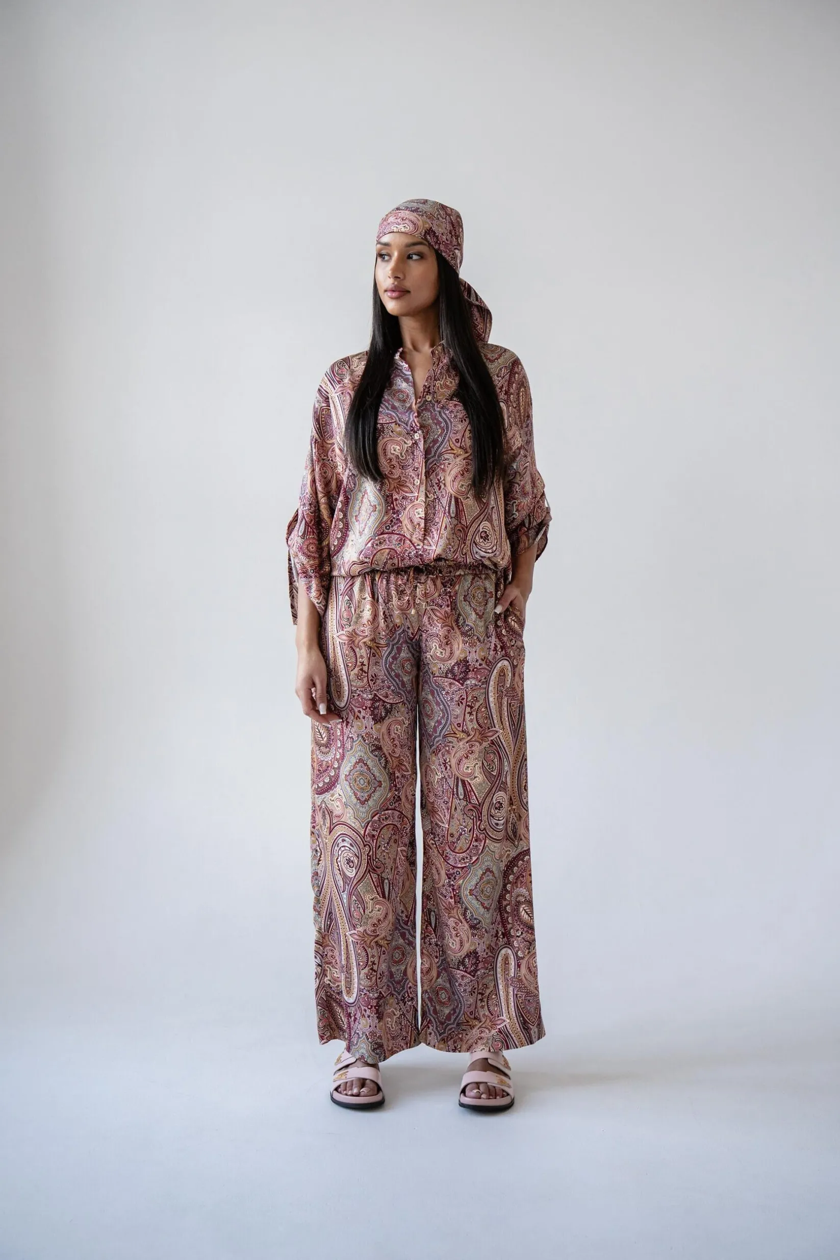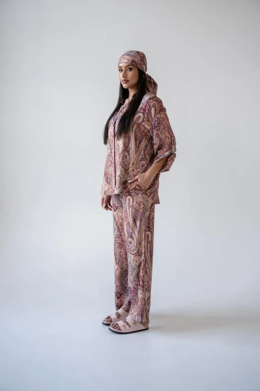 Lekkie i wygodne spodnie z orientalnym akcentem. Wykonane z przewiewnej tkaniny, ozdobione charakterystycznymi indyjskimi wzorami, które dodają im niepowtarzalnego uroku. Posiadają elastyczny pas z gumką i troczkami, co zapewnia idealne dopasowanie do sylwetki. Dwie praktyczne kieszenie ukryte w bocznym szwie dodają im funkcjonalności. Doskonałe na co dzień, do letnich stylizacji lub jako element boho look’u.