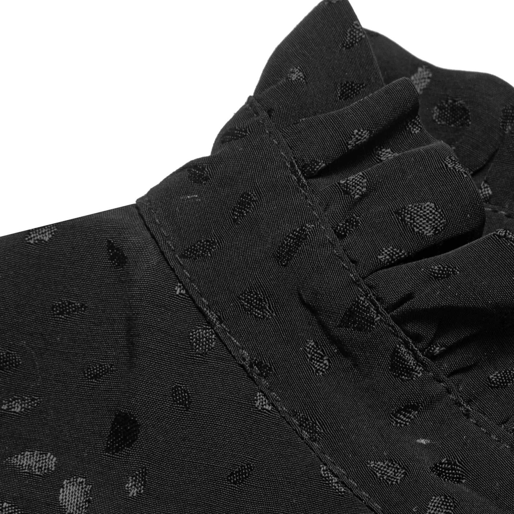 Sukienka PRATI wykonana z pięknej wiskozy w lekko żakardowy print. Sukienka w liter A z ozdobna stójka. Z przodu plisa z guzikami. Rękawy zakończone delikatnym mankietem. W pasie pasek dzięki któremu podkreślimy talię oraz wybierzemy pożądaną długość.