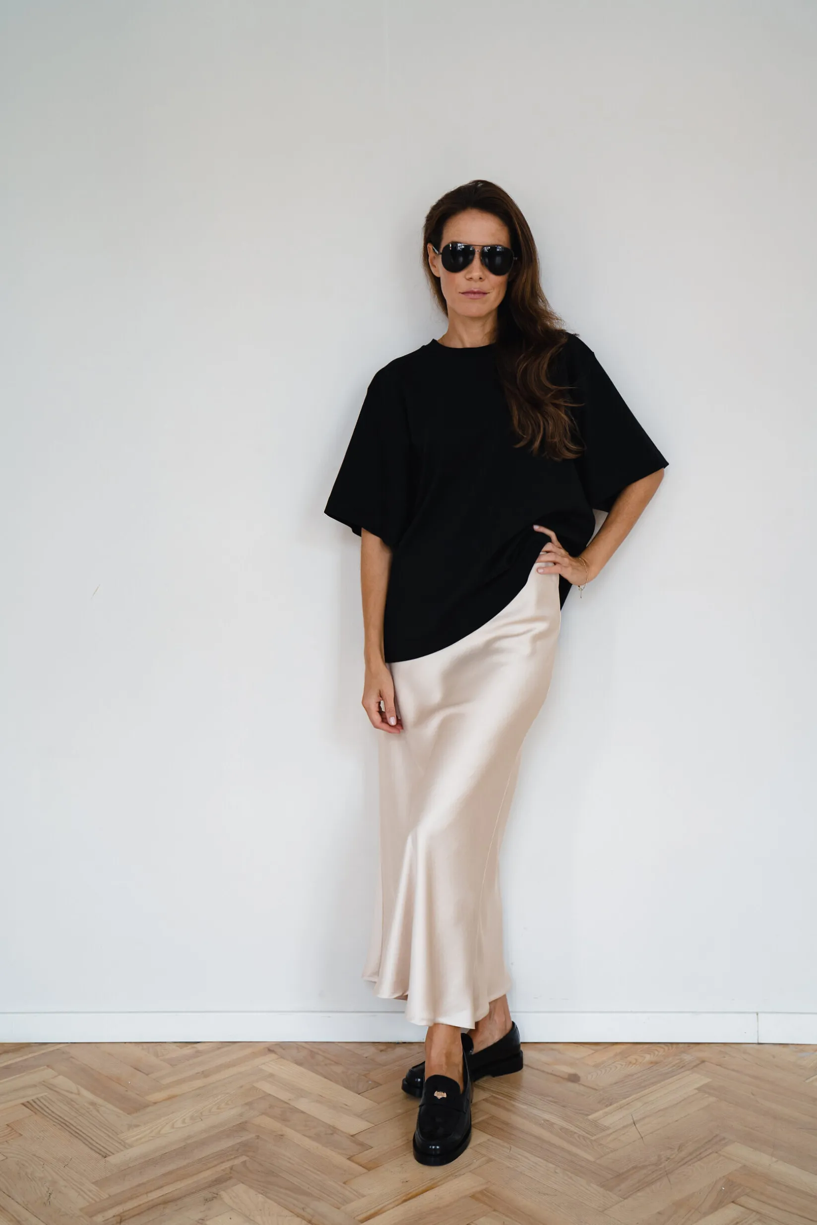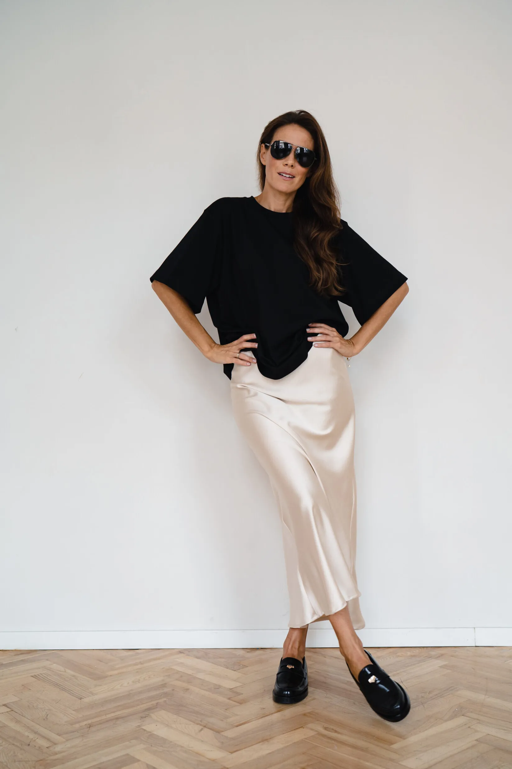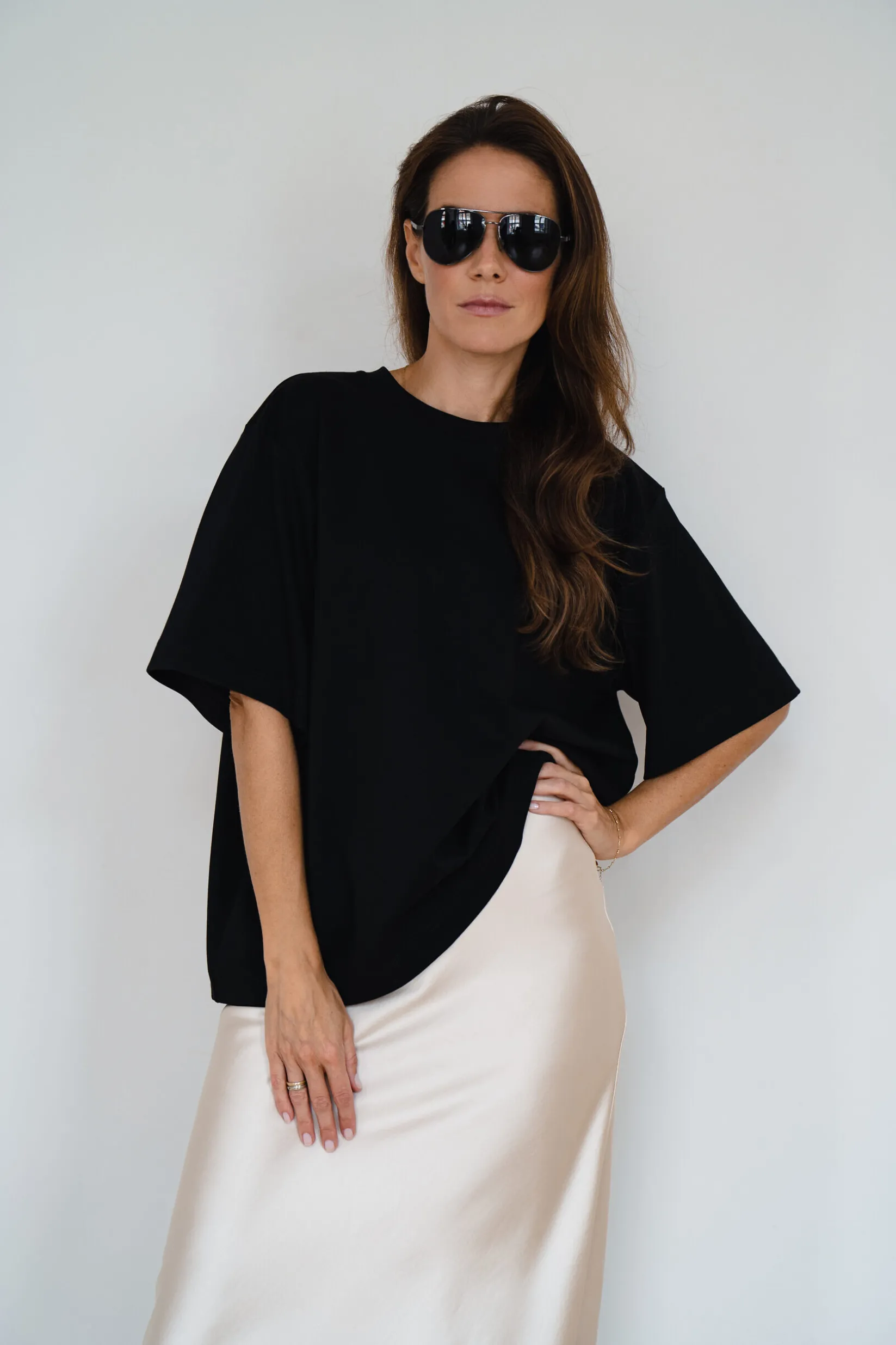Top Czarny – modelka prezentuje rozmiar XS/S przy wzroście 172 cm.