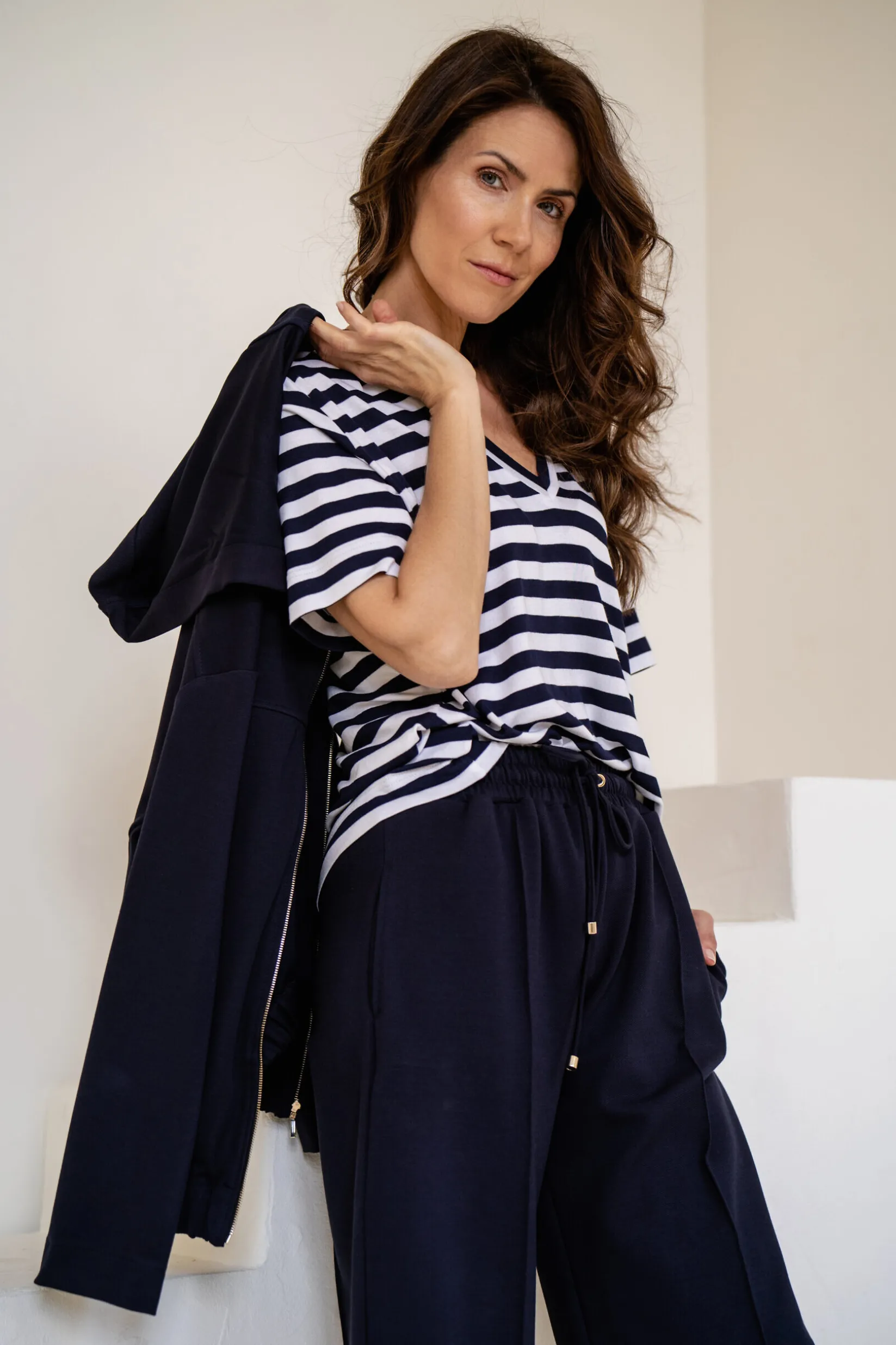 Top VIEN V STRIPED NEVY BLUE to klasyczna koszulka basicowa